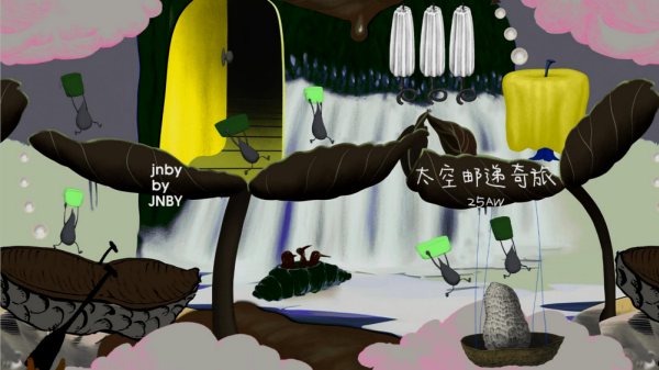 jnby by JNBY25秋冬系列围绕“土豆星球”的童话展开:原本干涸的星球,在小熊邮递员送达象征“自由、希望与想象力”的“一片水”后重焕生机。品牌生动描绘了《星球观察日记四则》、《任意门》、《宇宙邮递奇迹前传》等多个奇幻旅程中的星际场景,提取叶子雨滴、熊掌热气球、苹果飞船、大象园艺师等奇幻元素融入服装,激发小朋友们对自然、宇宙与生命的无限好奇与表达欲望。