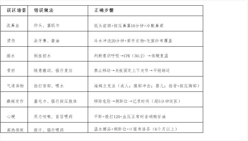 家庭急救误区与正确做法对比表