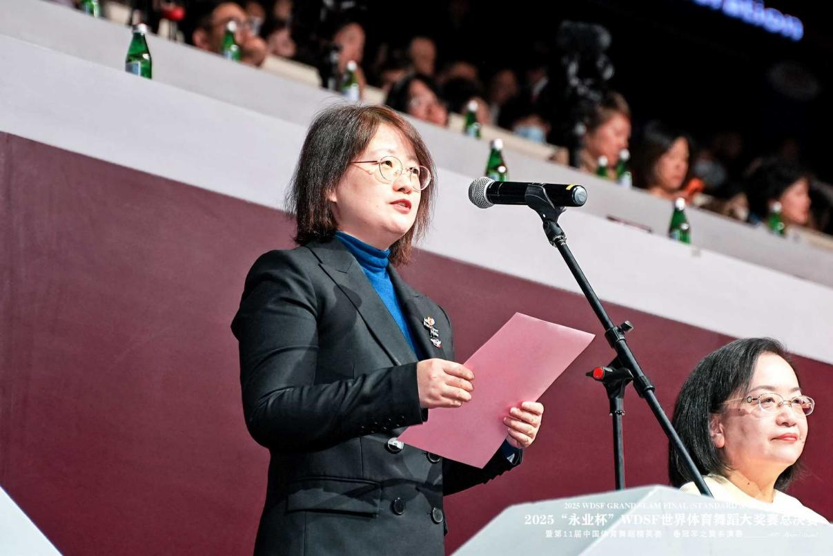 黄浦区委常委、宣传部部长钟璟代表东道主致欢迎辞。她表示,黄浦区作为上海的心脏、窗口和名片,自这项赛事首次落地黄浦以来,二十余载深耕不辍,连续承办WDSF顶级赛事,既是荣誉,更是责任,期待通过体育舞蹈搭建文明互鉴、民心相通的桥梁。体育舞蹈高雅独特的魅力与黄浦的区域文化特色完美契合,成为展示黄浦风貌、传递中国文化的重要窗口。